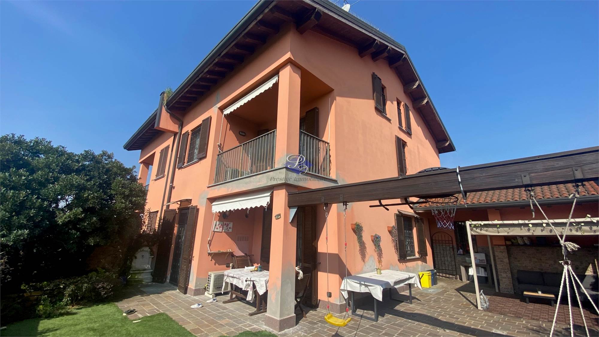 In un contesto residenziale tranquillo e ben curato, nel centro di Zeccone (PV), proponiamo una splendida porzione di villa bifamiliare che coniuga eleganza, comfort e funzionalità, inserita in una via privata al servizio di poche unità abitative, ideale per chi desidera vivere in un ambiente riservato senza rinunciare alla comodità dei principali servizi. La casa si sviluppa su tre livelli per complessivi 178 mq e accoglie con un piacevole portico d’ingresso che introduce ad una luminosa zona giorno composta da un ampio salone e da una cucina abitabile, entrambi affacciati sul giardino privato e collegati a un grazioso portico, perfetto per vivere momenti conviviali all’aperto; sullo stesso piano trovano spazio anche un bagno/lavanderia e un pratico locale ripostiglio. La zona notte, al piano primo, è pensata per garantire comfort e privacy e si compone di una camera matrimoniale con balcone e bagno padronale con doccia idromassaggio, oltre a due ulteriori camere servite da un secondo bagno. Il piano mansardato, impreziosito da travi in legno a vista, ospita un ampio ambiente open space dal fascino caldo e accogliente, ideale come studio, area relax o ulteriore spazio notte. Le finiture sono curate e di qualità, con parquet nelle camere e nella mansarda, serramenti in legno con doppi vetri completi di zanzariere e inferriate, oltre a impianti pensati per il massimo comfort abitativo, tra cui aria condizionata, antifurto perimetrale e volumetrico, impianto solare termico e riscaldamento autonomo con caldaia a condensazione. All’esterno, il giardino si presenta ben organizzato, con una zona pavimentata arricchita da gazebo e una parte verde piantumata, ideale per chi ama gli spazi all’aperto ma con una gestione semplice. Completa la proprietà un’ampia autorimessa di 41 mq con apertura automatizzata, perfetta per soddisfare ogni esigenza di spazio. Una soluzione abitativa completa e armoniosa, pensata per chi cerca qualità, tranquillità e uno stile di vita confortevole in un riservato contesto residenziale.