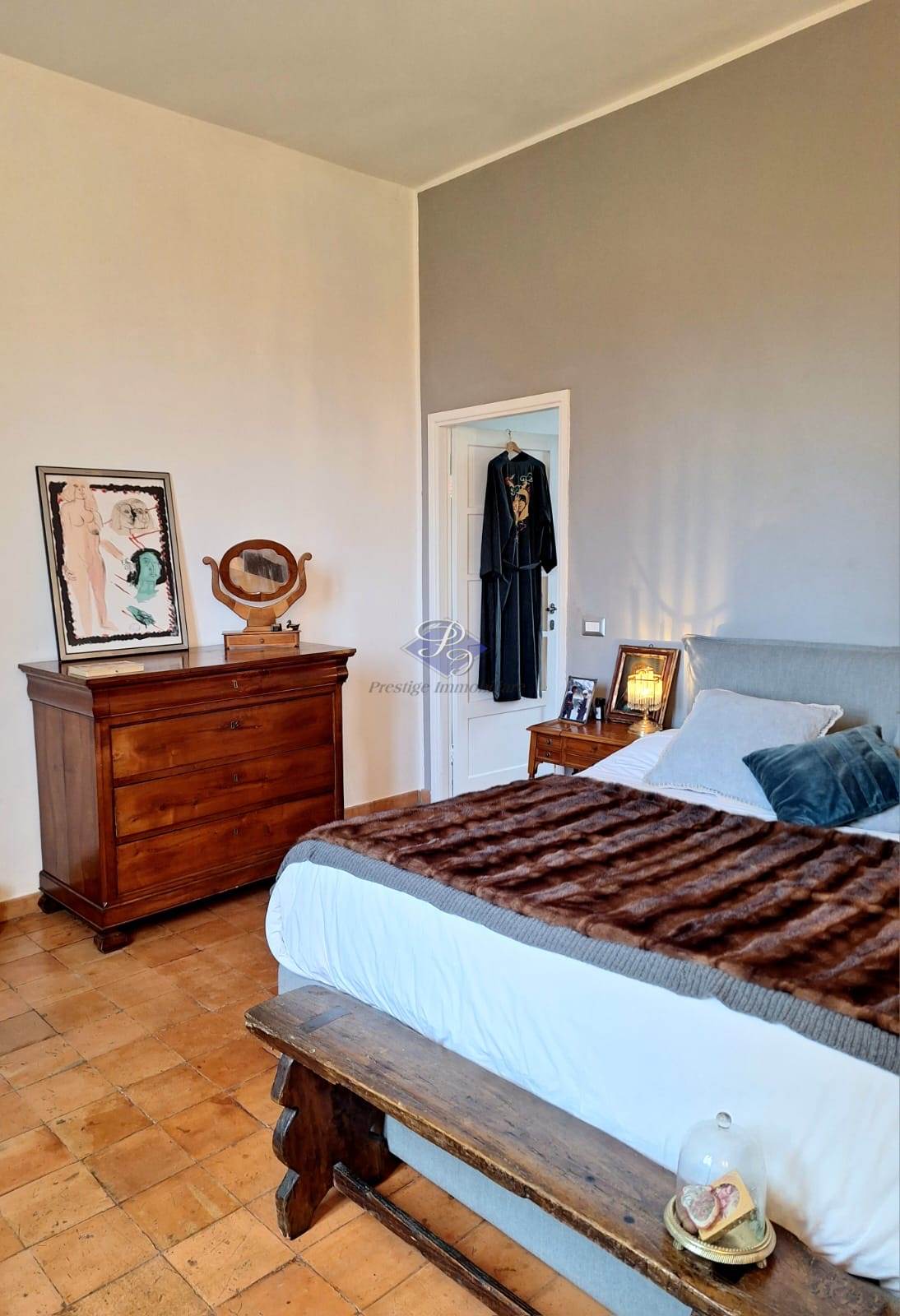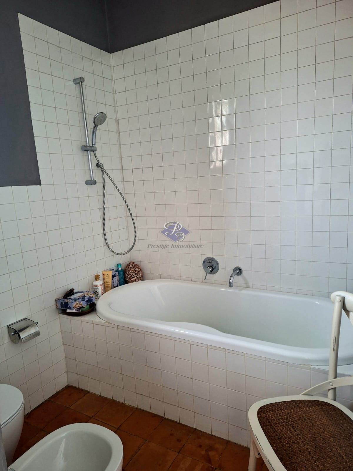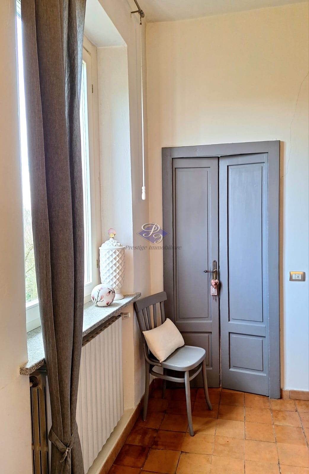 La zona notte ospita una camera matrimoniale con cabina armadio e bagno padronale, affiancata da due ulteriori camere e un secondo bagno, tutte progettate per garantire comfort e privacy. Questa area è impreziosita da una pavimentazione in cotto originale di fine Ottocento, elemento di grande valore storico e charme.