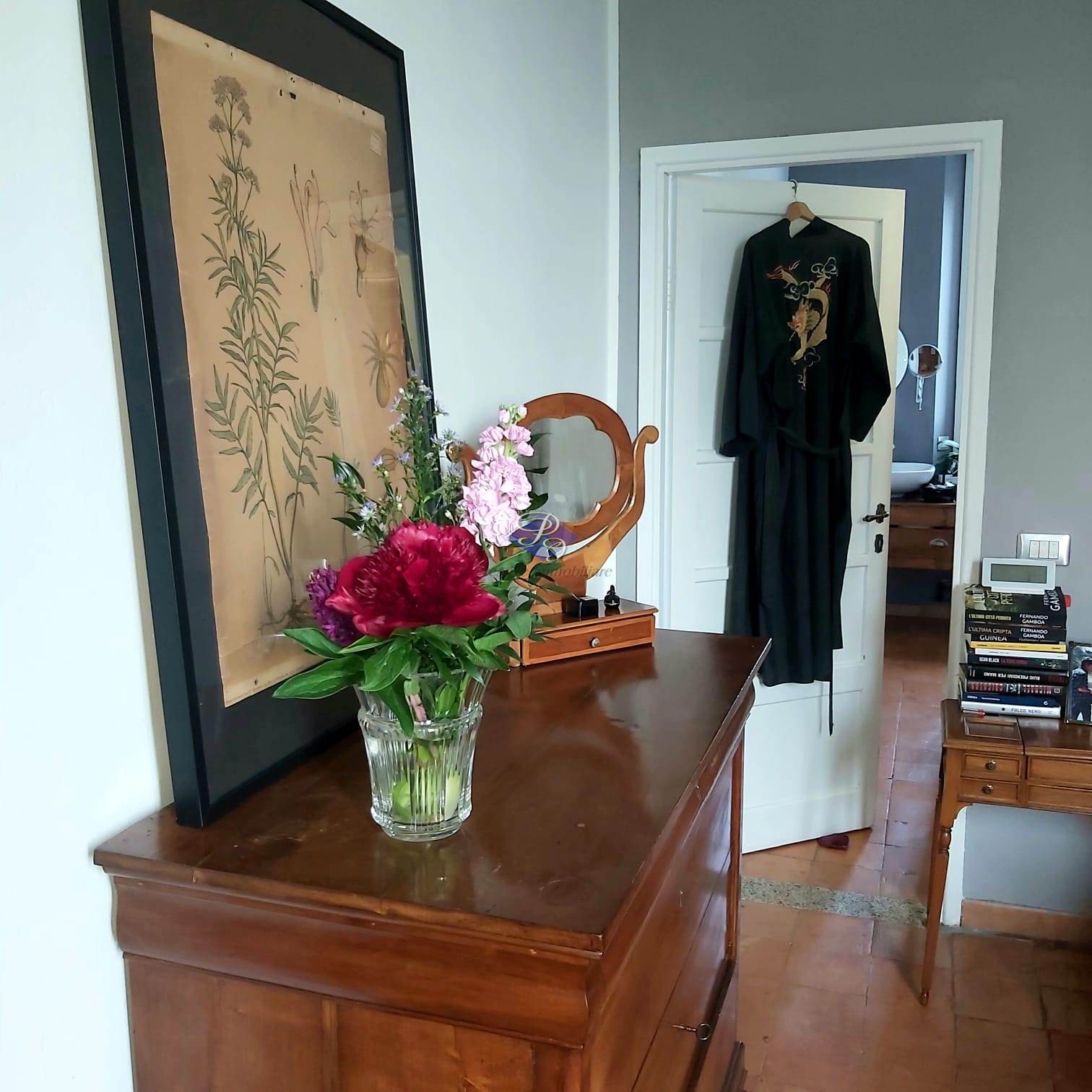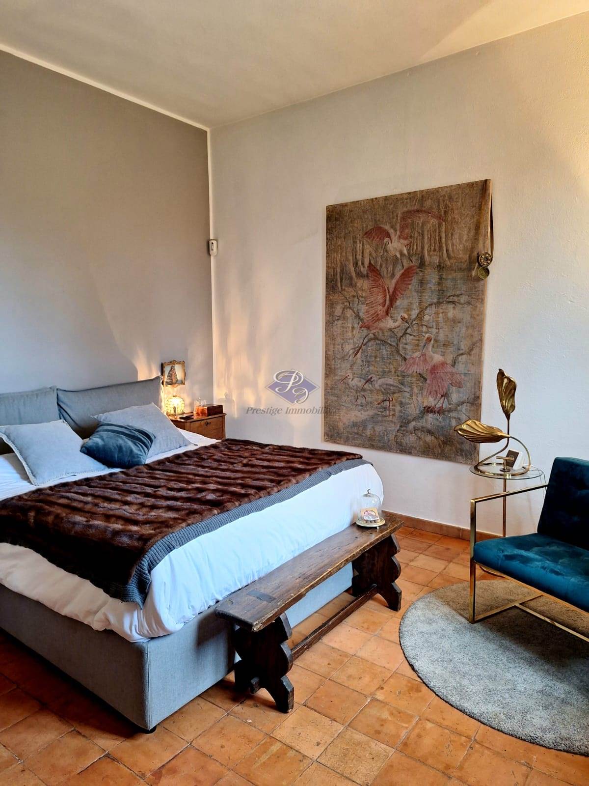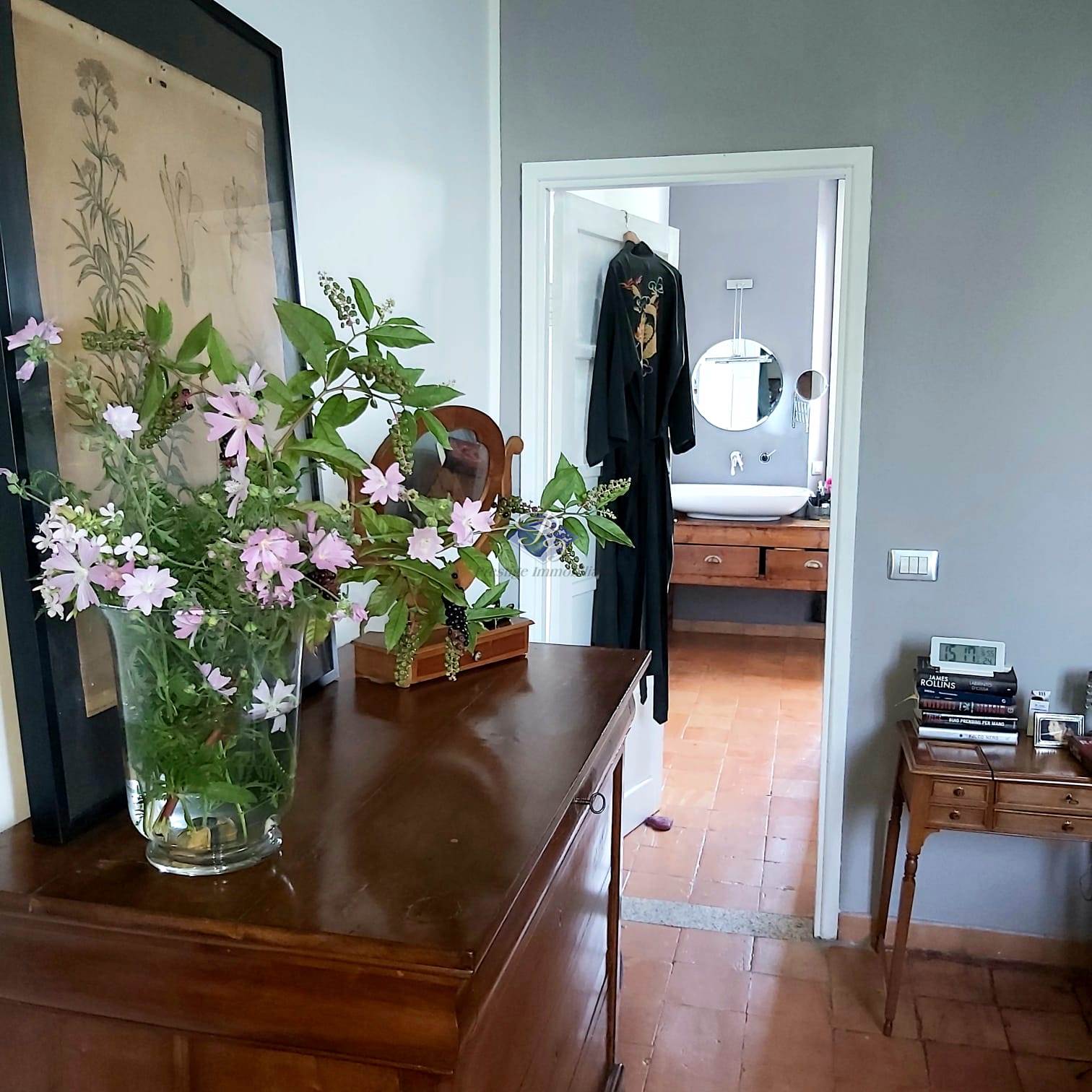 La zona notte ospita una camera matrimoniale con cabina armadio e bagno padronale, affiancata da due ulteriori camere e un secondo bagno, tutte progettate per garantire comfort e privacy. Questa area è impreziosita da una pavimentazione in cotto originale di fine Ottocento, elemento di grande valore storico e charme.