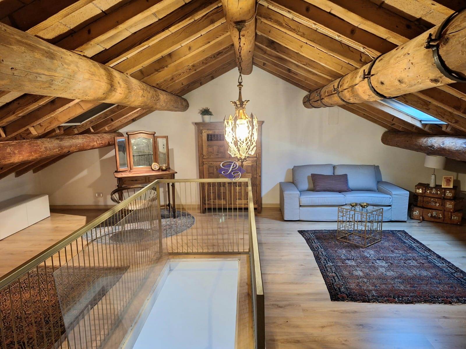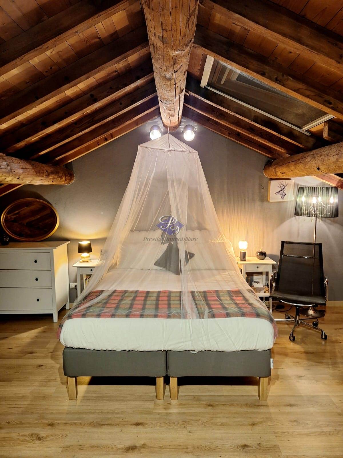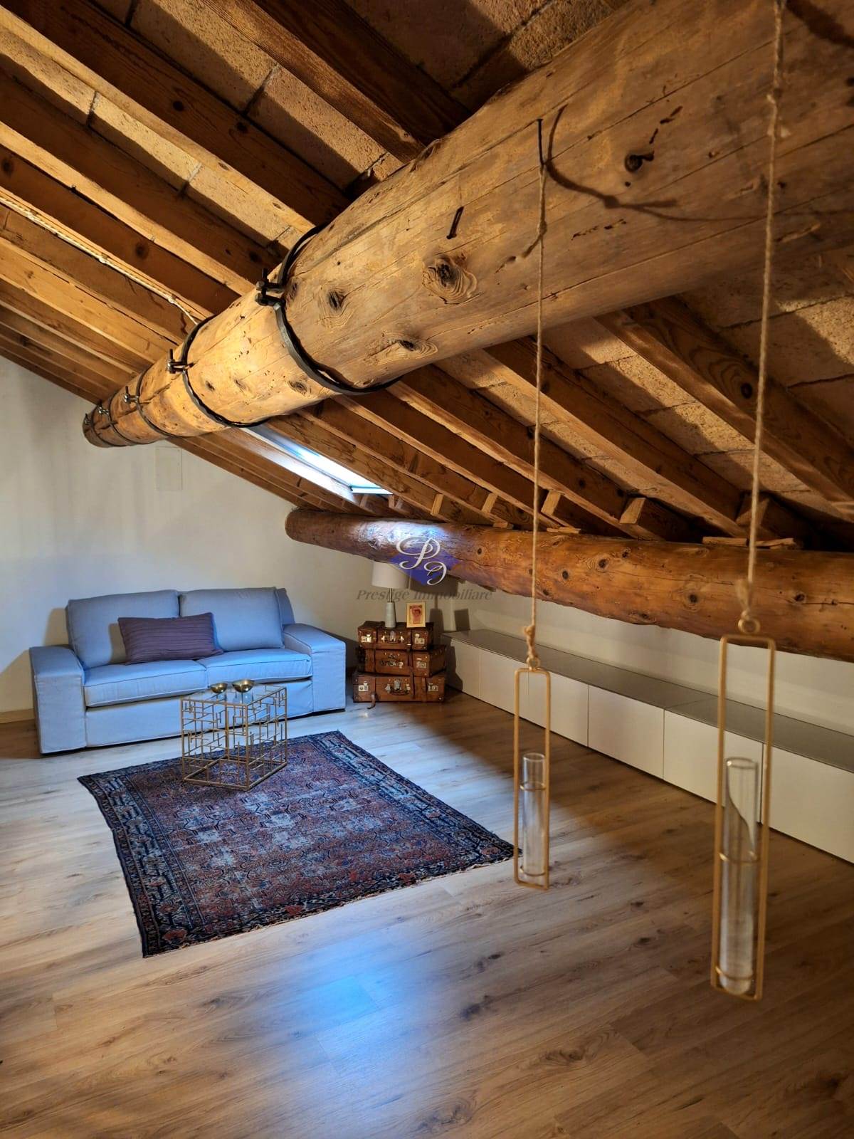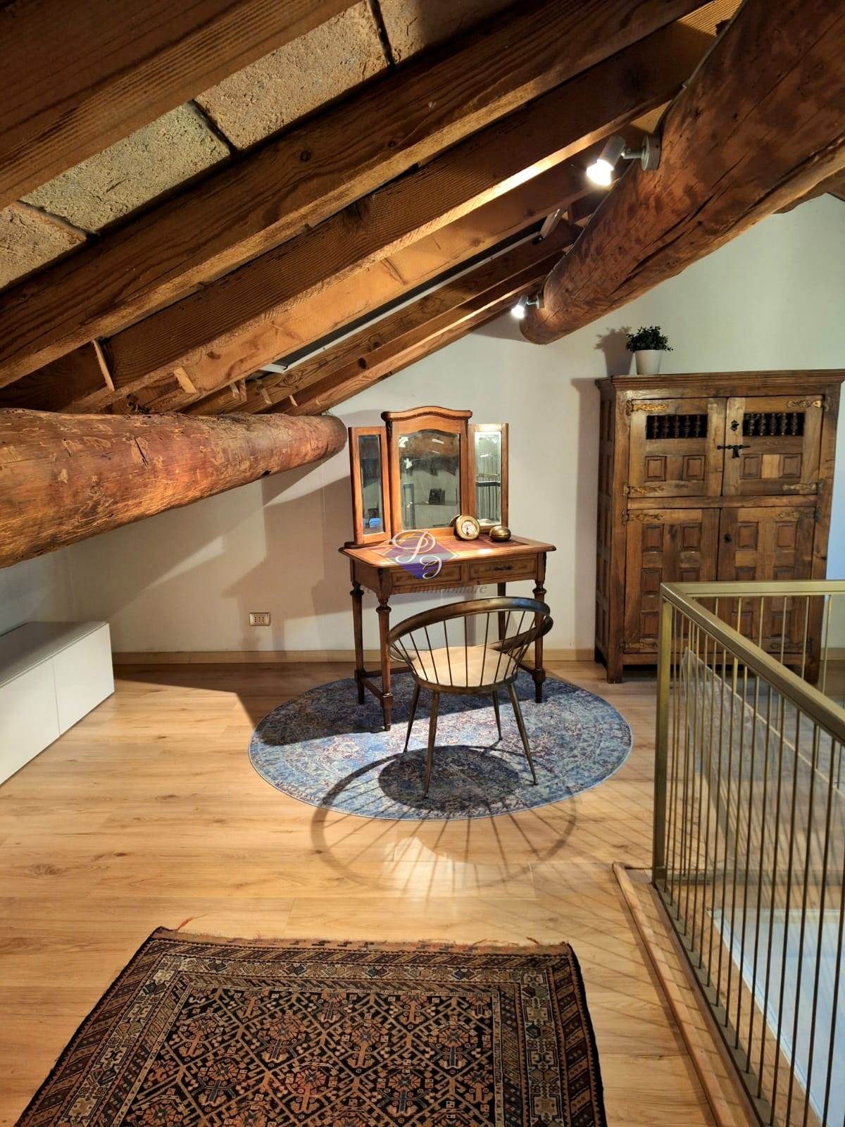 La mansarda, impreziosita da soffitti con travi a vista e lucernari, offre un ampio spazio versatile, perfetto come camera/studio, sala hobby o area relax.